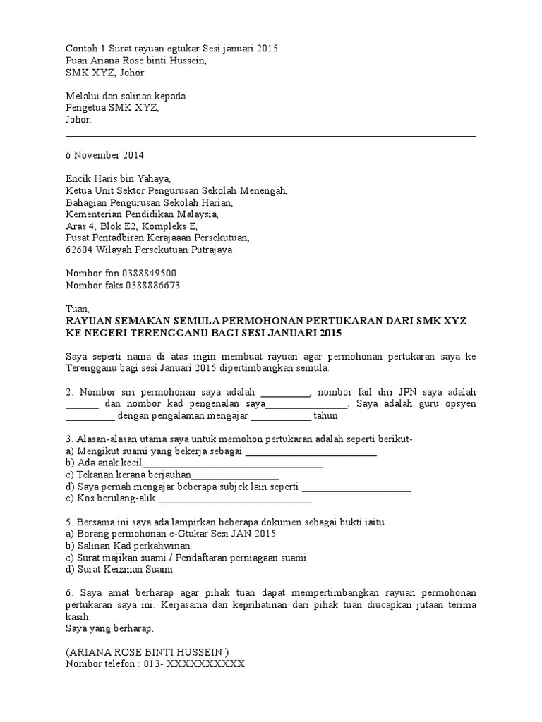 Contoh Surat Rayuan Pindah Egtukar Pdf
